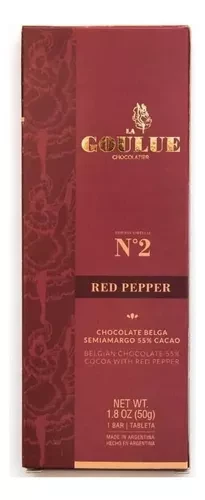• Tableta Nº2 de chocolate Belga semiamargo, 55% de cacao con pimienta roja.